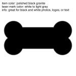 These polished granite dog bones can be laser engraved with photos, text, logos, dates, or drawings. The engraving is a white mark and will stand up to being outdoors. The bones are cut via water jet for detail from granite slabs and are 7-9 mm thickness. The edges and back are unpolished.