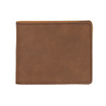 This personalized leather bifold wallet is available in light and dark brown leatherette. These wallets feature a bill fold in the back, 6 card holder slots, and two pockets on each side.